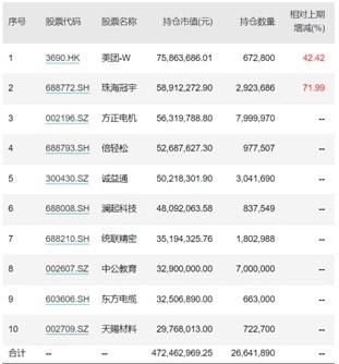 新进前十大的个股包括了方正电机、倍轻松、诚益通、澜起科技、统联精密、中公教育、东方电缆和天赐材料。