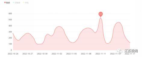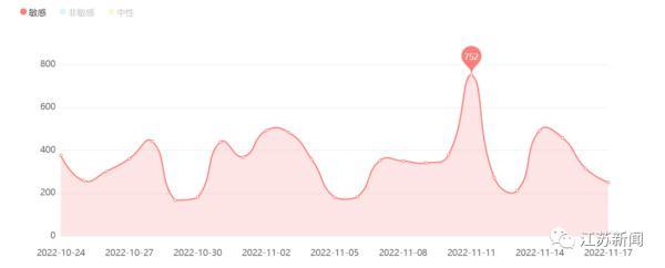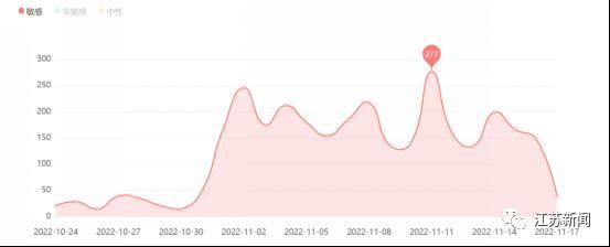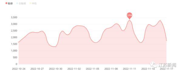“双十一”期间,共收集“双十一”江苏“消费维权”类信息58997条,占消费类信息总量的11.5%。“消费维权”类信息呈曲线波动走势,11月11日信息量达到峰值,为3294条。