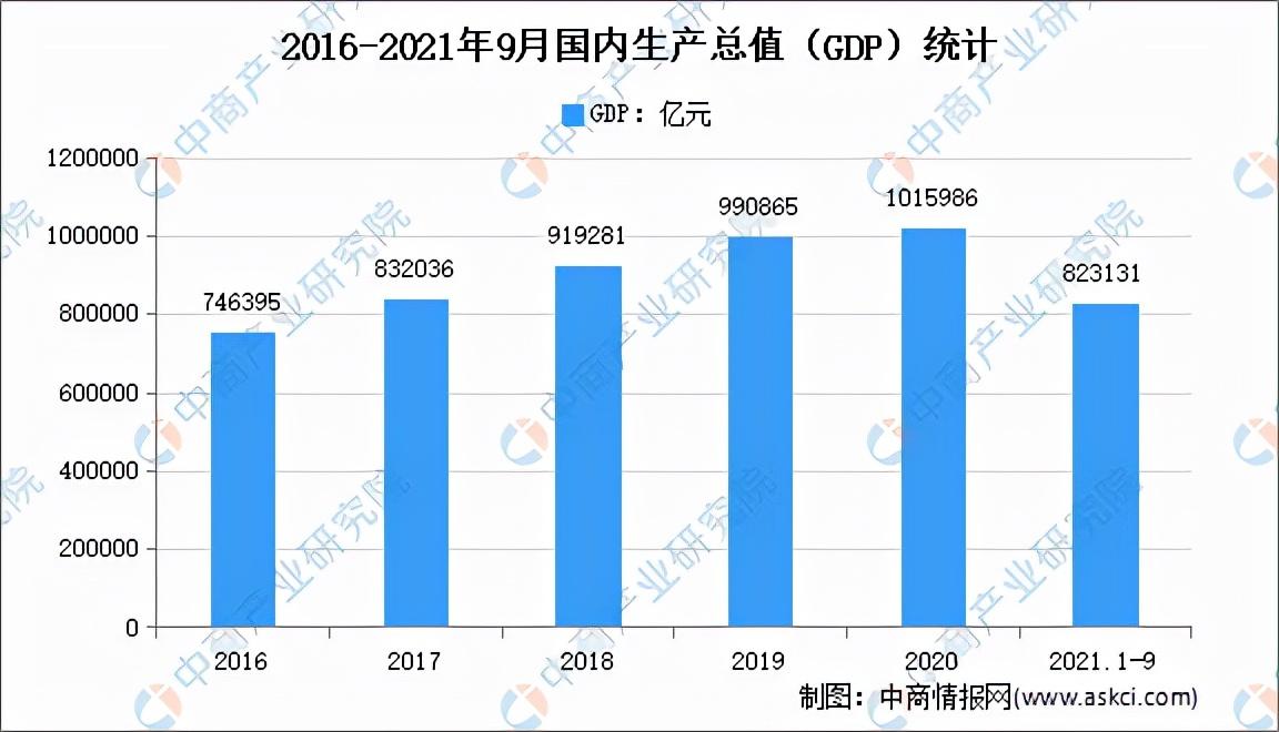 数据显示,2021年前三季度,我国GDP为823131亿元,按不变价格计算,同比增长9.8%,两年平均增长5.2%。分产业看,第一产业增加值为51430亿元,同比增长7.4%;第二产业增加值为320940亿元,同比增长10.6%;第三产业增加值为450761亿元,同比增长9.5%。