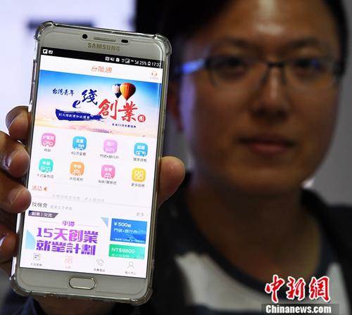 一位在福建平潭参加实训的台湾青年展示其手机下载的“台陆通”APP。中新社记者 张斌 摄