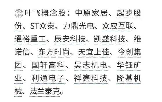而我们也需警惕远离此类标的,尤其是此次事件中的“叶飞概念股”。
