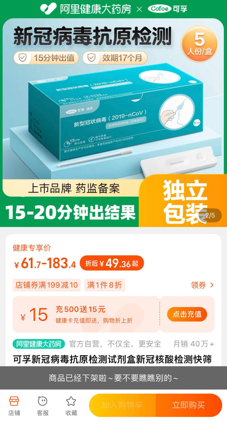 多家品牌旗舰店的抗原检测试剂已售空下架或显示预售。 (网络截图/图)