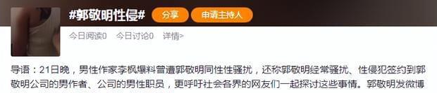比如郭敬明半夜摸到他的房间,对他意图不轨等等,真是让人下巴掉地,