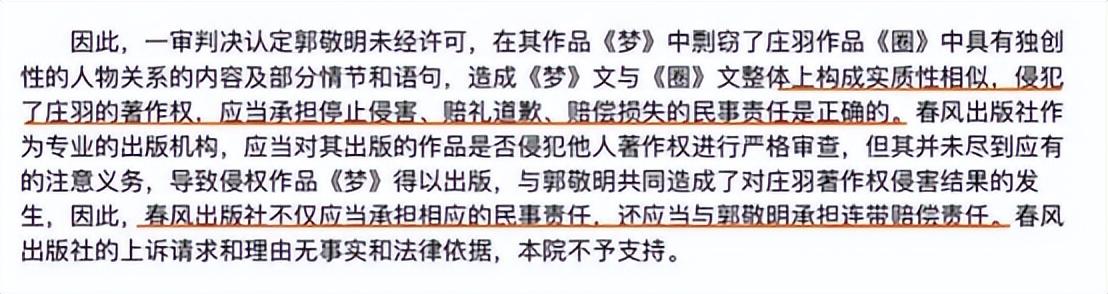 作者庄羽状告郭敬明的《梦里花落》,抄袭了自己的《圈里圈外》,