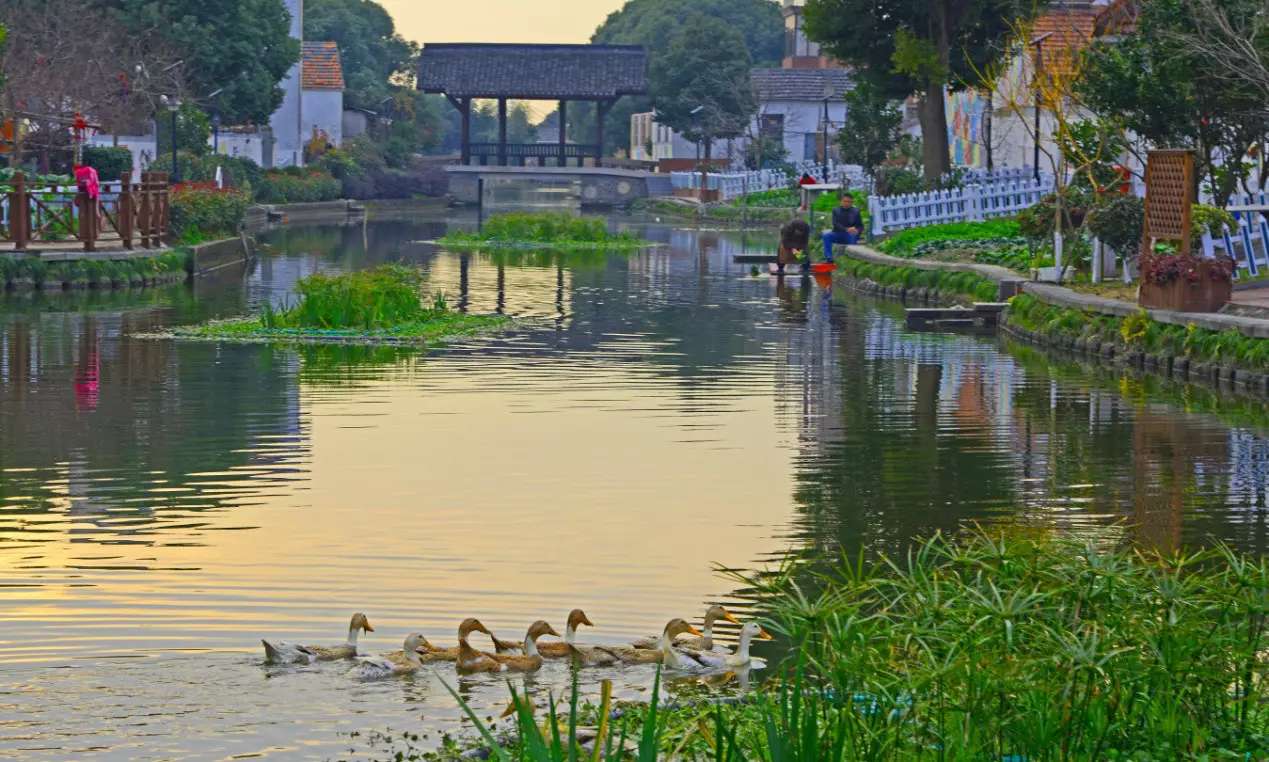 金秋时节,站在两地联合巡河的船头,只见河水缓缓流动,河道里停泊着三两渔船,水鸟在水面上悠闲地滑翔。清澈的河水,倒映着河岸两旁古朴的民居,一派柔美的田园风光,让人心旷神怡。