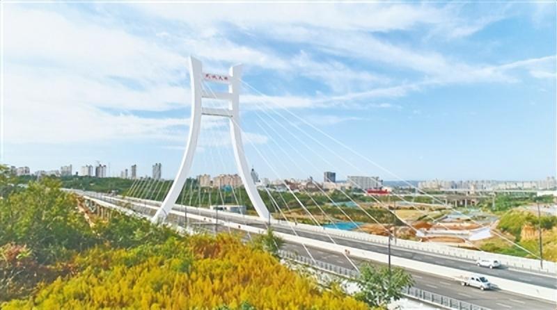 总投资7.8亿元的苏秦路西段建设项目,目前已全线贯通,其中紫荆路至望嵩路段已建成通车。图为苏秦路西段的巩城大桥。