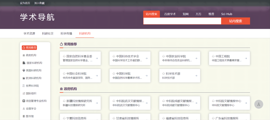 学术检索、学术机构、学术期刊、学术论坛、科技新闻、科普网站、著名大学、科技论坛、科学门户、教育资源等