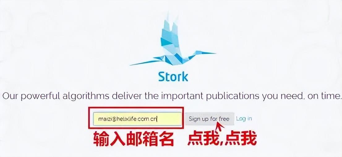 。在Stork里,输入邮箱注册,然后输入与课题相关的关键词,点击添加,可以实时评测关键词的质量,估计每个月的文献数量。确定添加关键词后,就可以坐等通知了。