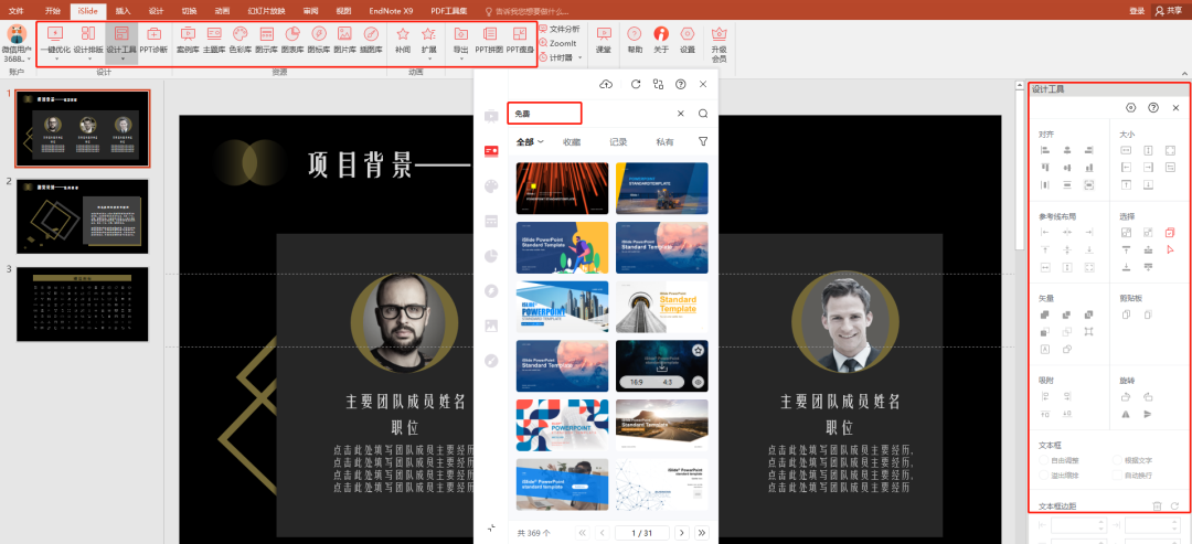 38个设计辅助功能,超30万专业PPT模板和素材