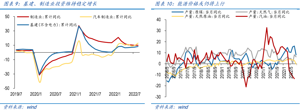 8月基建、制造业投资维持稳定增长,在国内产业升级阶段,强链补链、留抵退税等政策将加速制造业投资复苏。