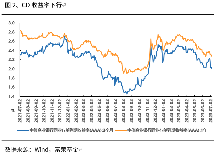 上周日内盘面宽幅震荡,短端受资金面宽松影响整体点位已近前期低点;信用债中长久期债券收益率下行幅度较大。6月下旬以来票据利率持续回落,7月初稍有回升但整体仍处于低位区间。目前市场可能会提前交易6月经济和金融数据,同时股债跷跷板效应明显,债市对利空变得更加敏感。