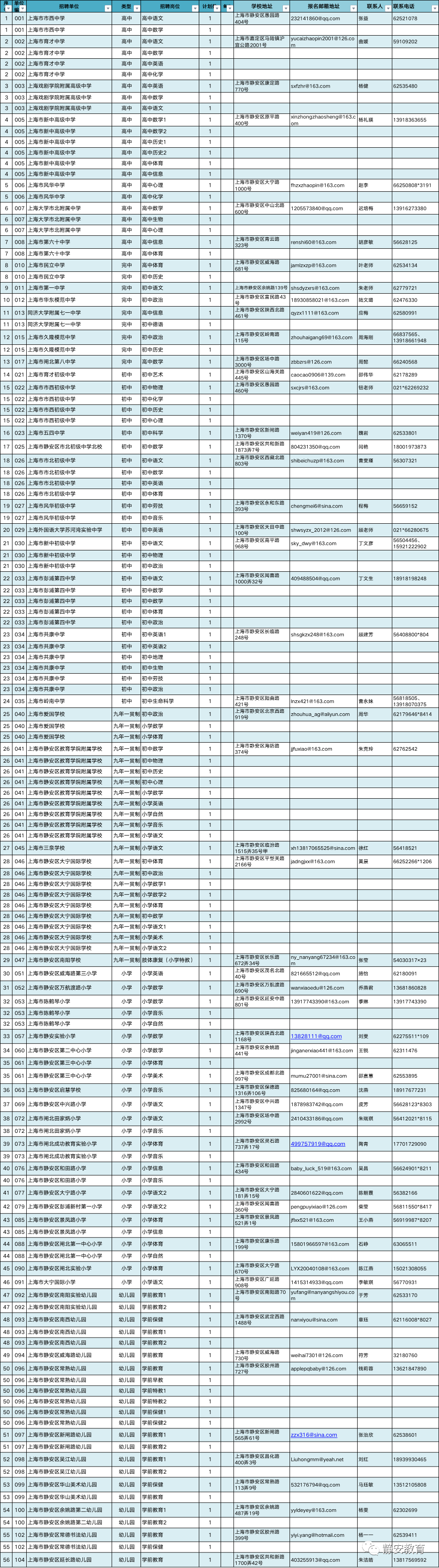 区教育系统2020年第三批教师招聘涉及98家事业单位,271个岗位。具体岗位如下。