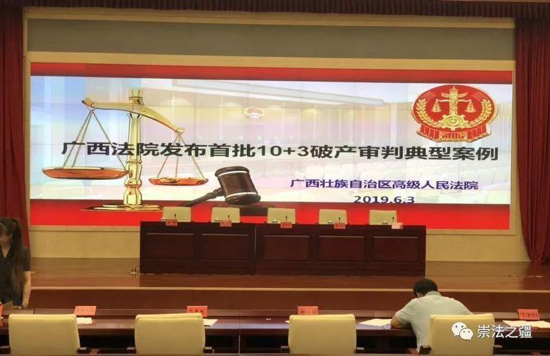 6月3日,广西壮族自治区高级人民法院召开新闻发布,发布广西法院首批10+3破产首批典型案件,从会上传来好消息,崇左法院一破产案件入选。
