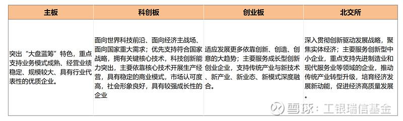 这次全面注册制改革统一了各市场板块注册制安排,每个板块都有清晰的市场定位。其中,主板突出“大盘蓝筹”特色、科创板突出“硬科技”属性、创业板主要服务成长型创新创业企业、北交所主要服务创新型中小企业。