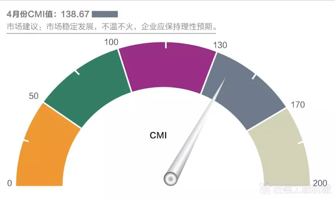 这个情况始于2018年,然而,根据中国工程机械市场调研中心给我们敲响了警钟,2019年4月份中国工程机械市场指数即CMI为138.67,同比降低5.73%,环比降低2.31%(依据CMI判断标准,130